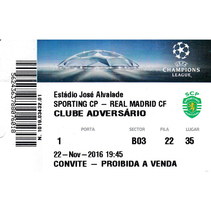 Sporting CP vs Real Madrid 22-11-2016 UEFA Champions League ticket