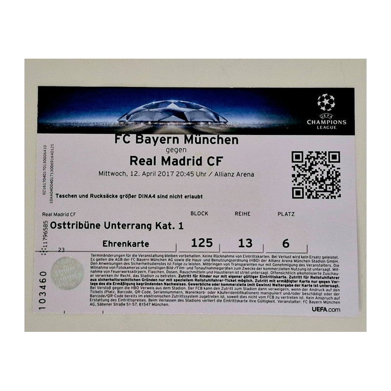 FC Bayern München vs Real Madrid CF 21-04-2017 UEFA Champions League ticket